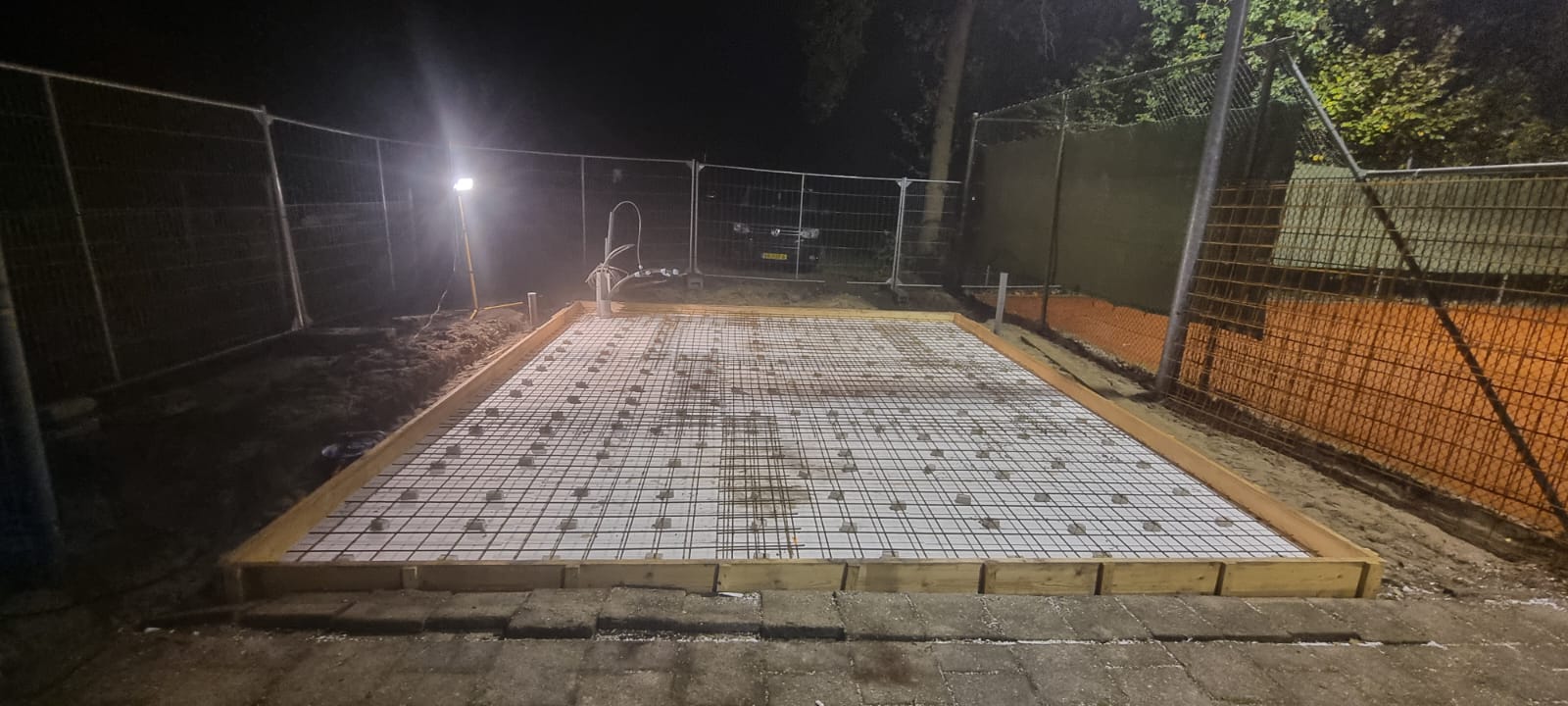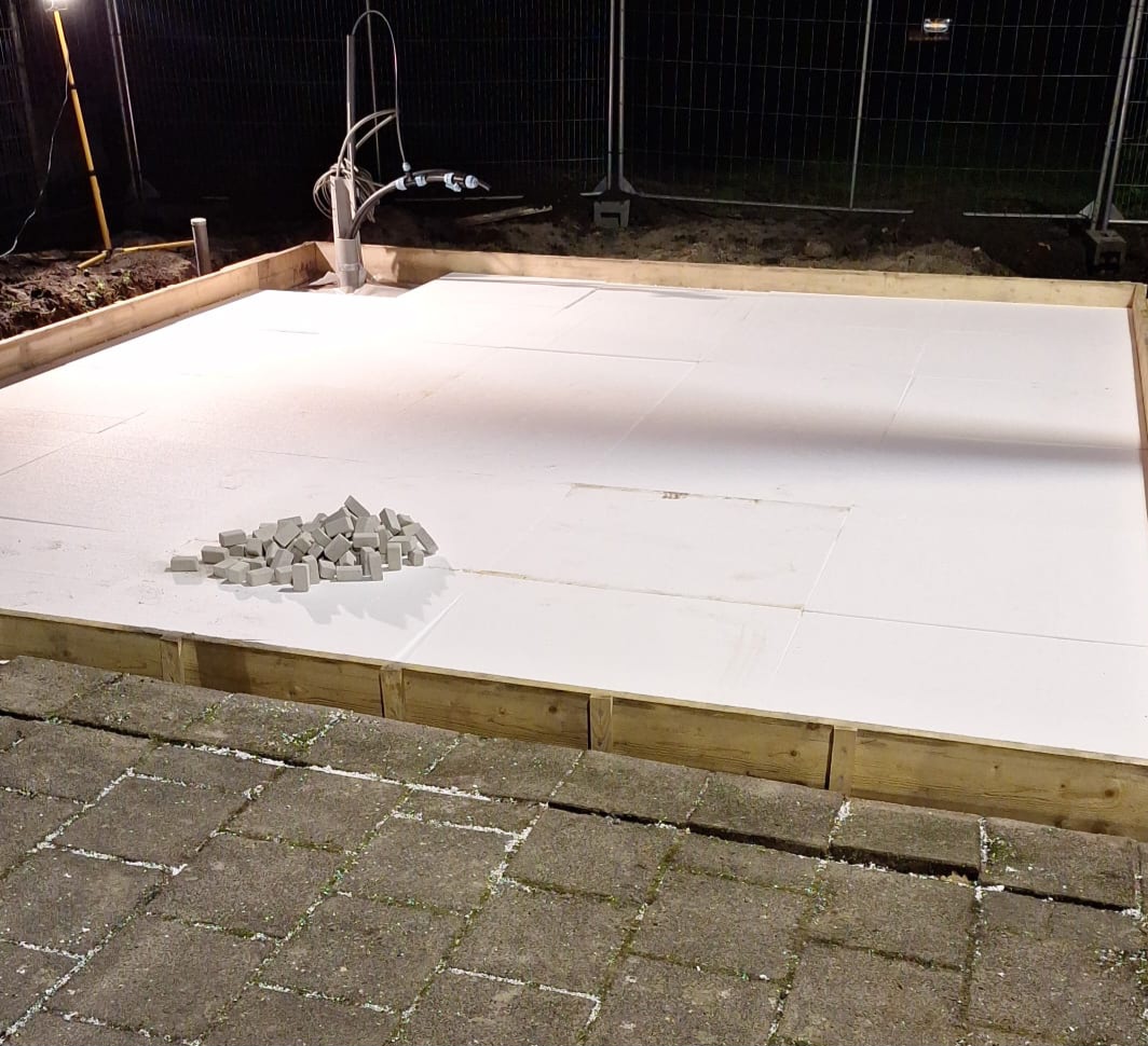 Donderdag 16 oktober zijn isolatieplaten aangebracht en staalnetten geplaatst om de vloer te versterken die vrijdag 17 oktober met beton wordt gestort.